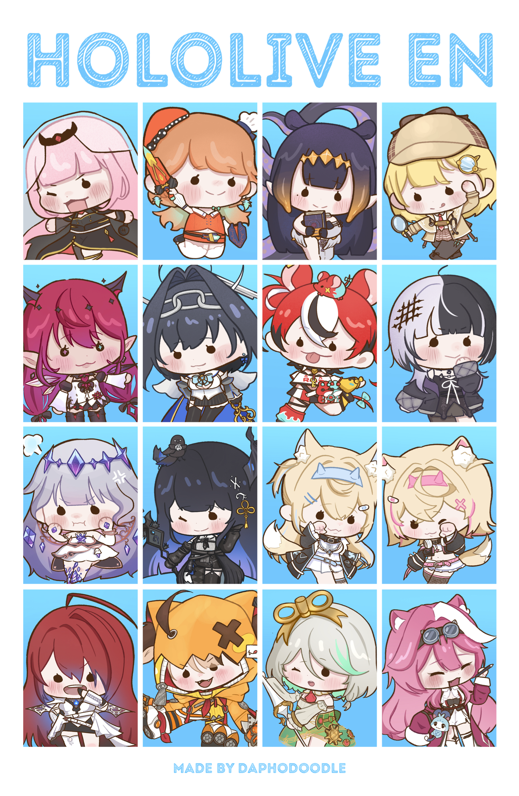 Hello Iām Daph! I love drawing cute and fun illustrations mainly revolving around fandoms I love! This includes Alien Stage, vtubers, animes, webtoons and some original art! I love creating cute, unique and useable merch such as eyemasks, wooden coasters, plush keychains and more!